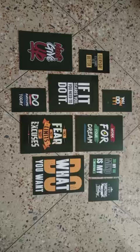 Modern 10-piece Yellow & Black Motivational Wall Art Set